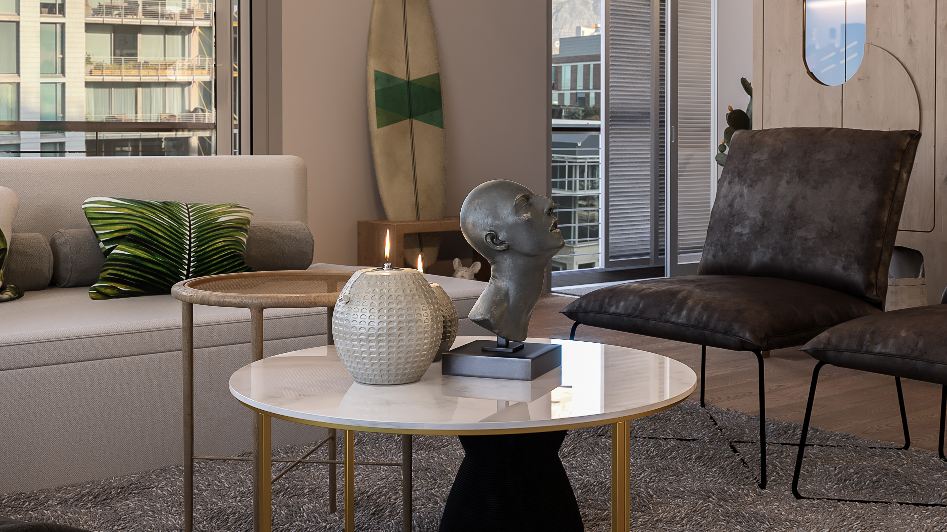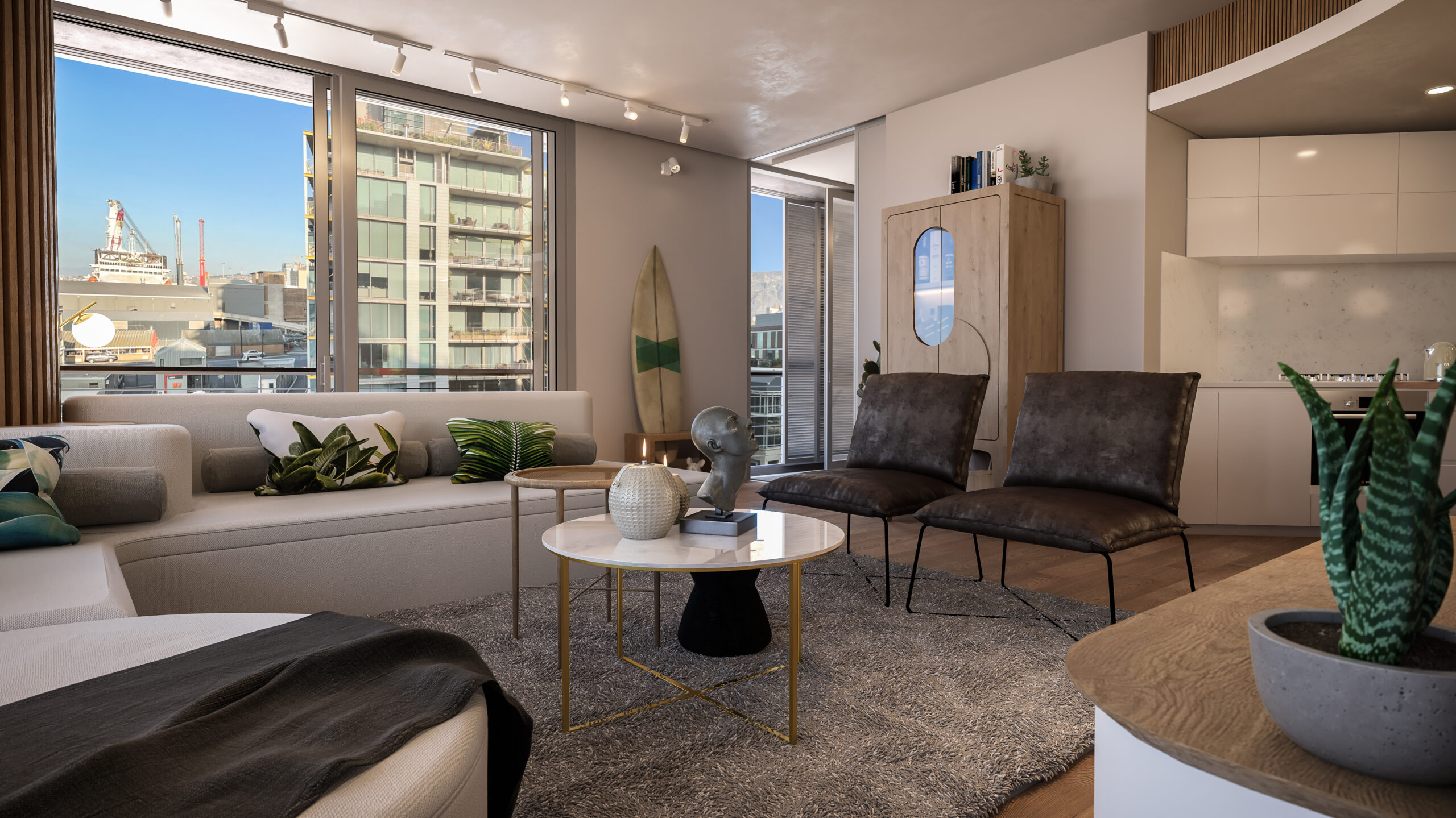 We were appointed by Bauart Developments to visualize and render their design for a luxury Cape Town apartment, situated in the esteemed V&A Waterfront, Cape Town, with breathtaking views.