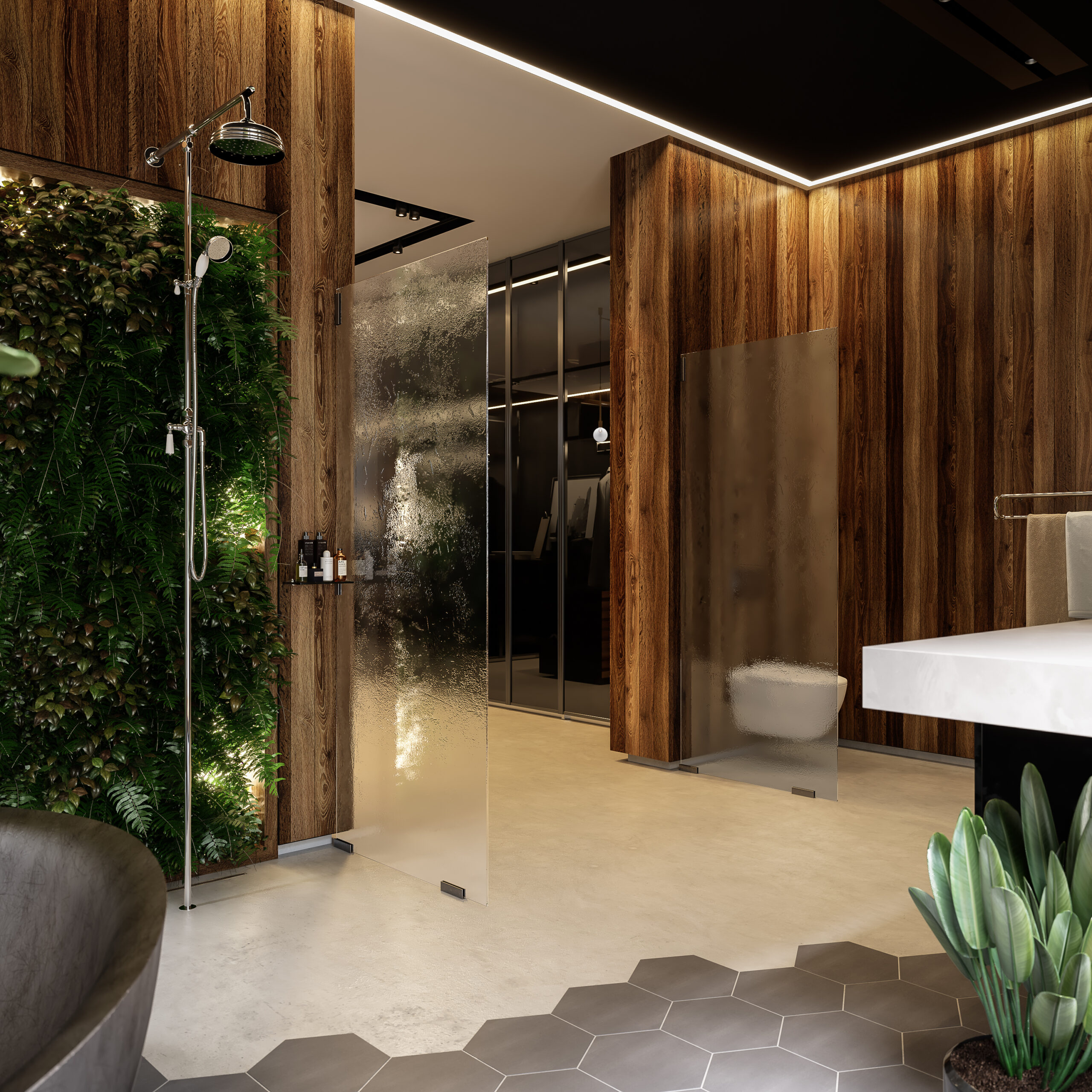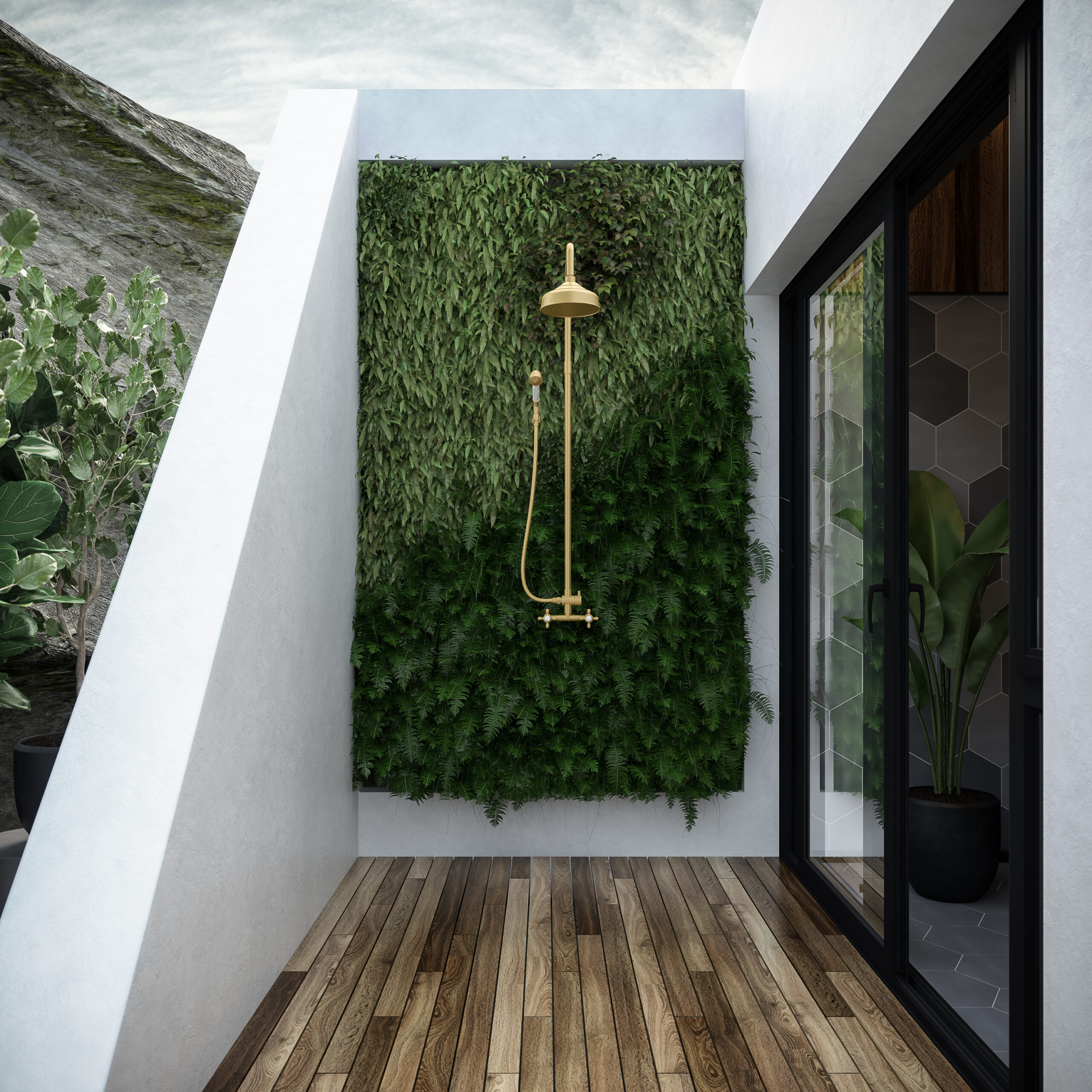 But what truly sets the Stark Suite apart is its outdoor shower, featuring a striking biophilic design wall feature. Embracing nature’s harmony, this unique addition brings the tranquility of the outdoors into your private sanctuary, creating an oasis of serenity.