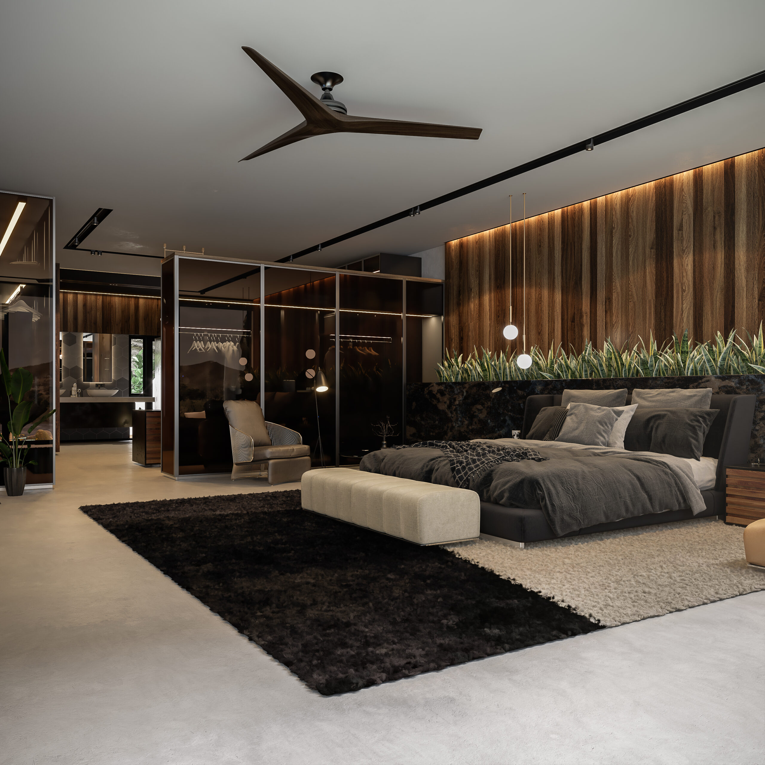 Appointed by a tech-loving bachelor for upgrades to his master suite.