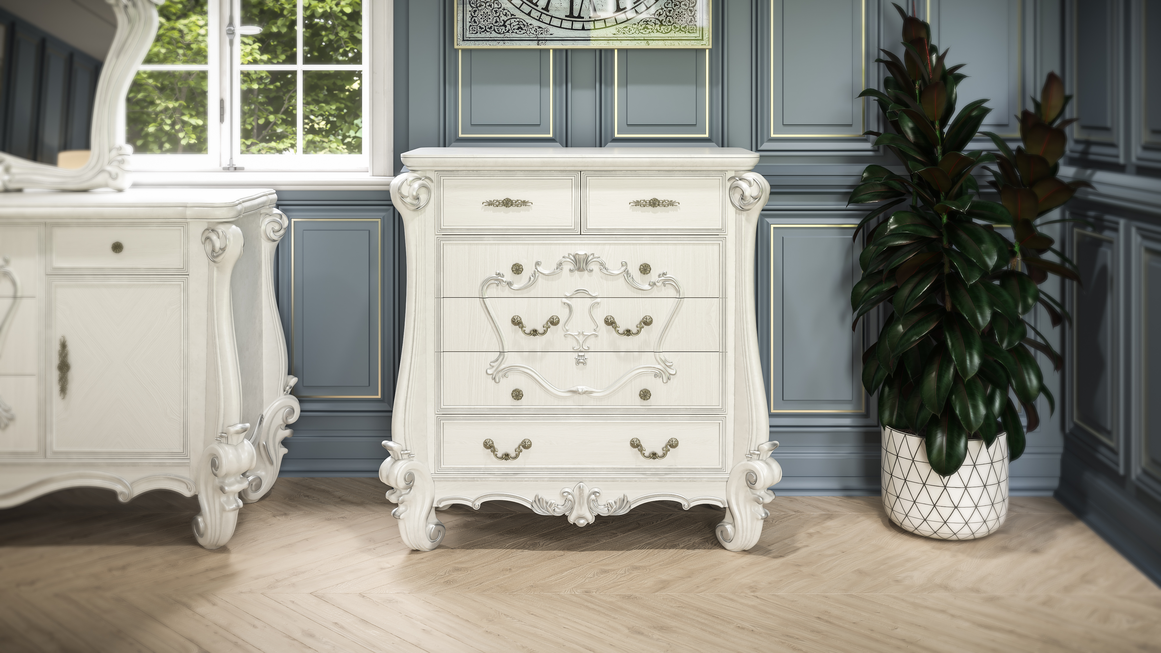 Beginning with the meticulous process of 3D modelling, our team crafted detailed and accurate representations of each piece of furniture, capturing the essence of Winston Sahd’s designs. This step involved a close collaboration with the client to ensure that every nuance and feature was accurately portrayed in the virtual space.