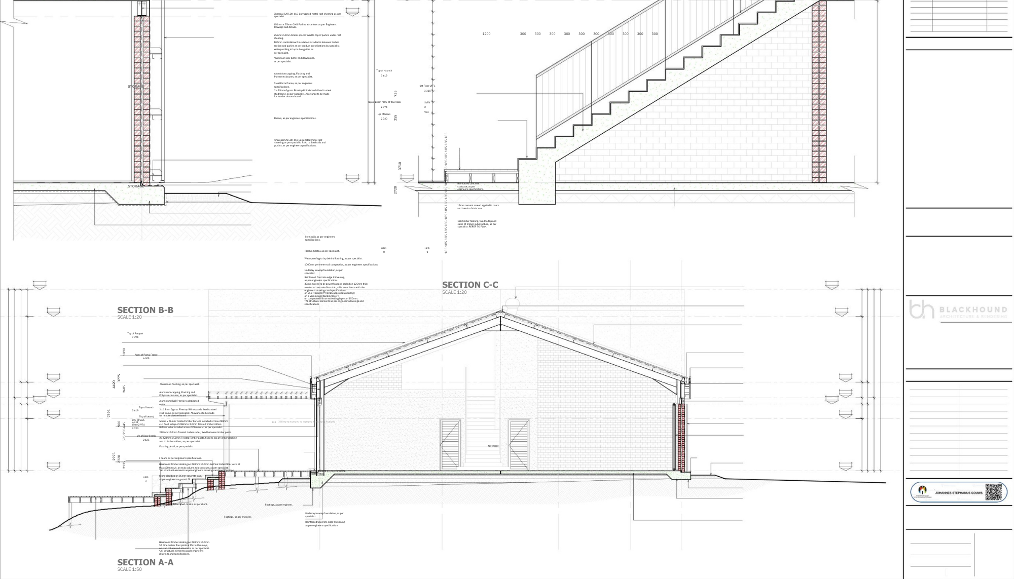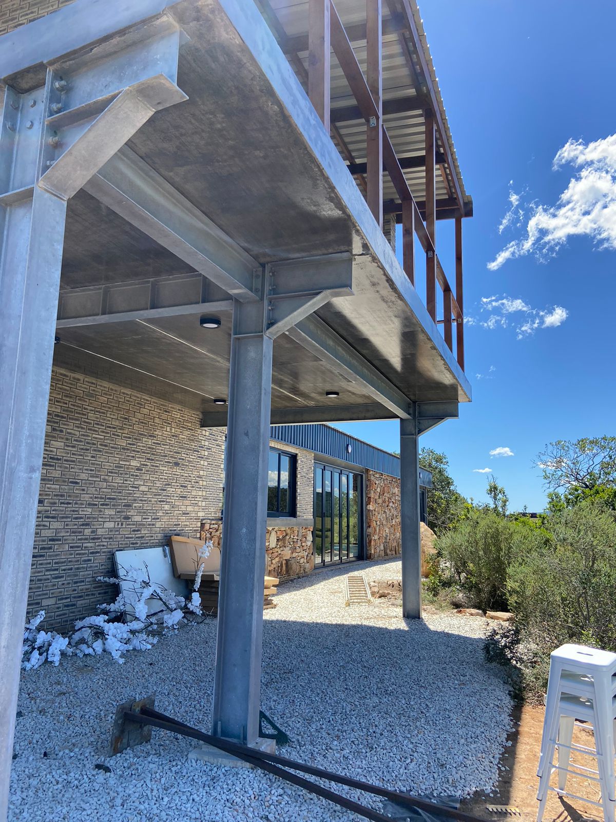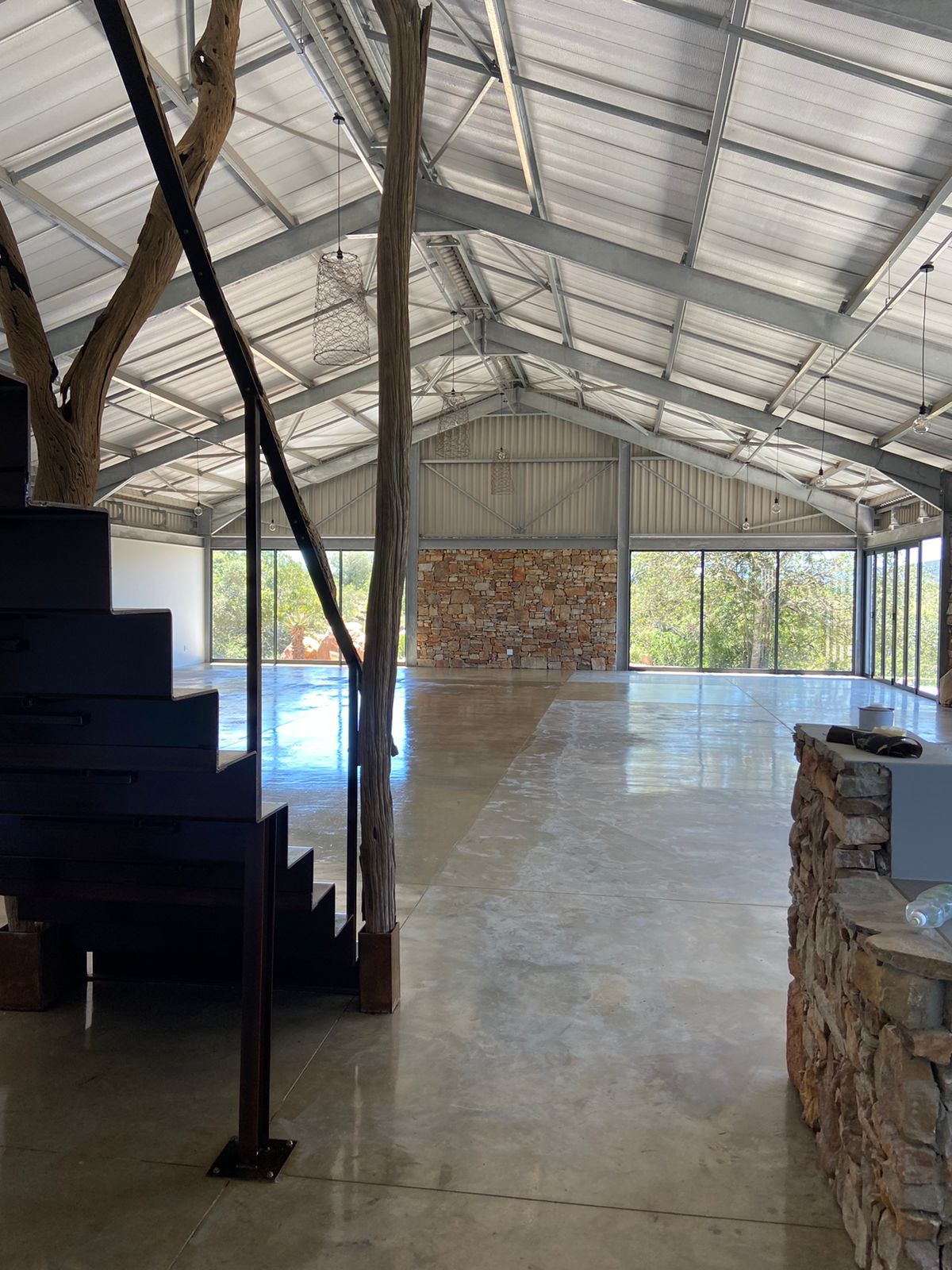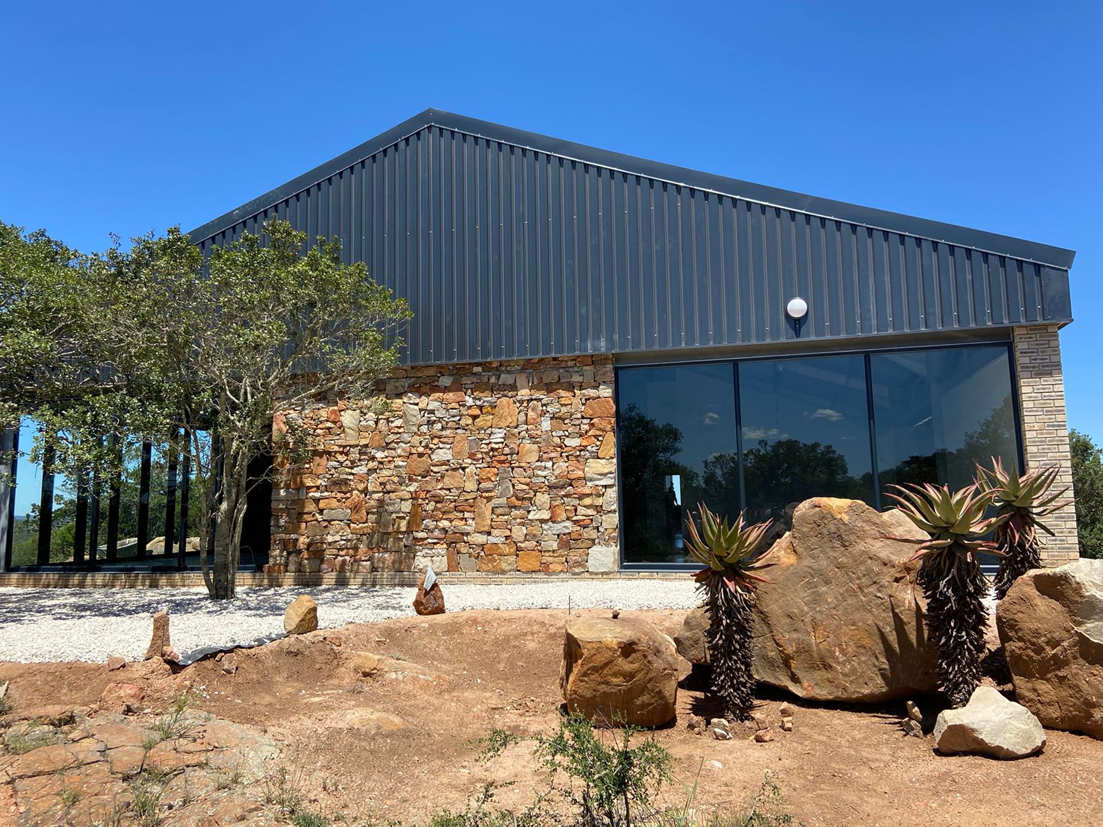 Our client approached us with the concept of developing a lodge with a multi-functional venue on private farmland in Paterson, Eastern Cape. As part of the initial phase of development and construction, we prioritized the planning of the venue and general ablution blocks due to the client’s daughter’s desire to host her wedding on the farm. The venue needed to be versatile, allowing for a variety of events and seminars while also serving as a storage space as necessary. With awe-inspiring views of the surrounding lands, we designed the venue to open up to nature and the landscape, with a focus on creating spaces that celebrate the views and natural elements.